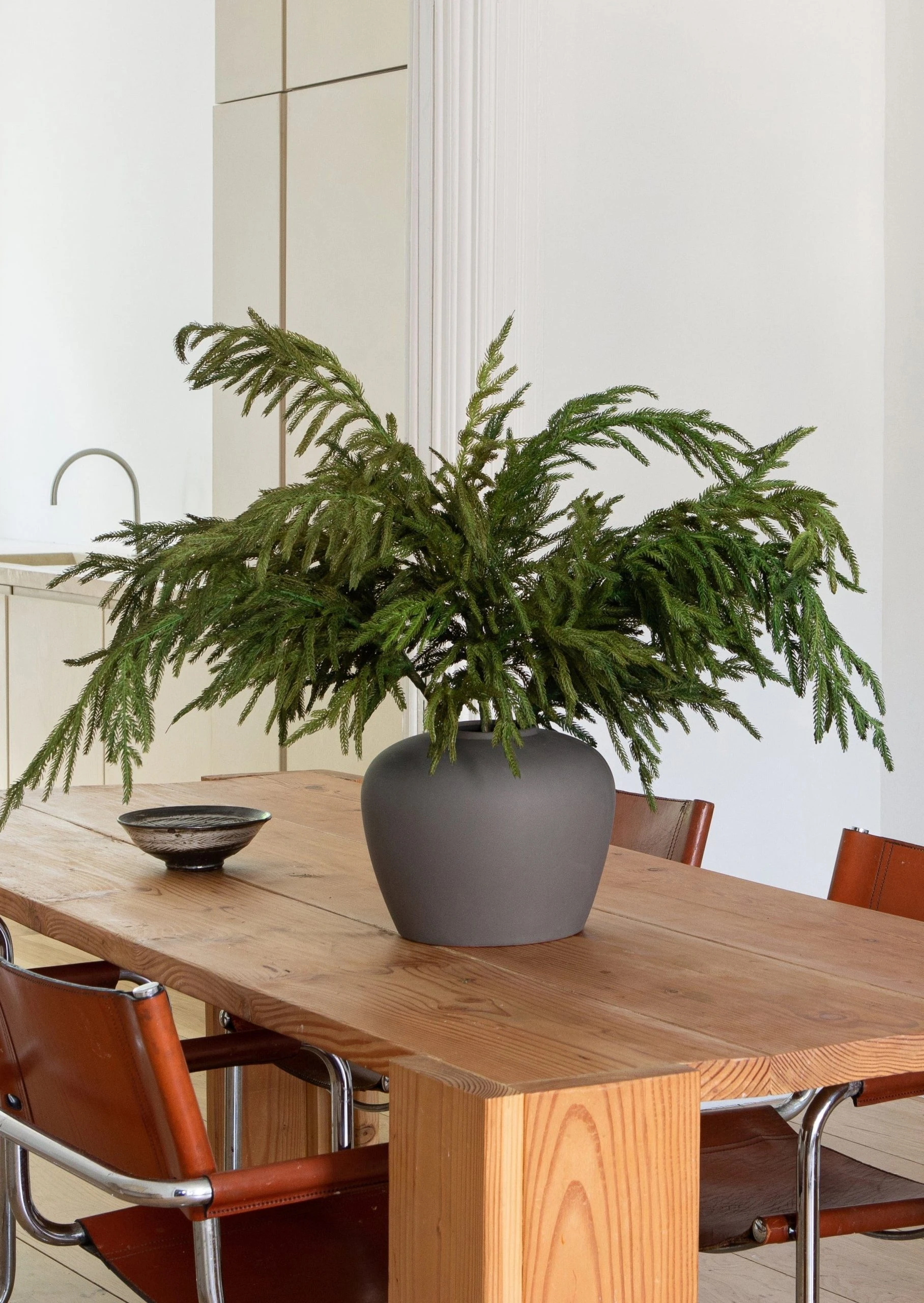 Create amazing Christmas centerpieces with this faux Norfolk pine branch that features the most realistic artificial holiday greens. Soft-to-the-touch pine sprigs in natural green color perfectly mimic the feel and the look of nature. Style this spectacular greenery in your tall woodland vase arrangements, winter wedding bouquets, and boutonnieres. Even make a stunning 6-foot garland using 3 branches.
