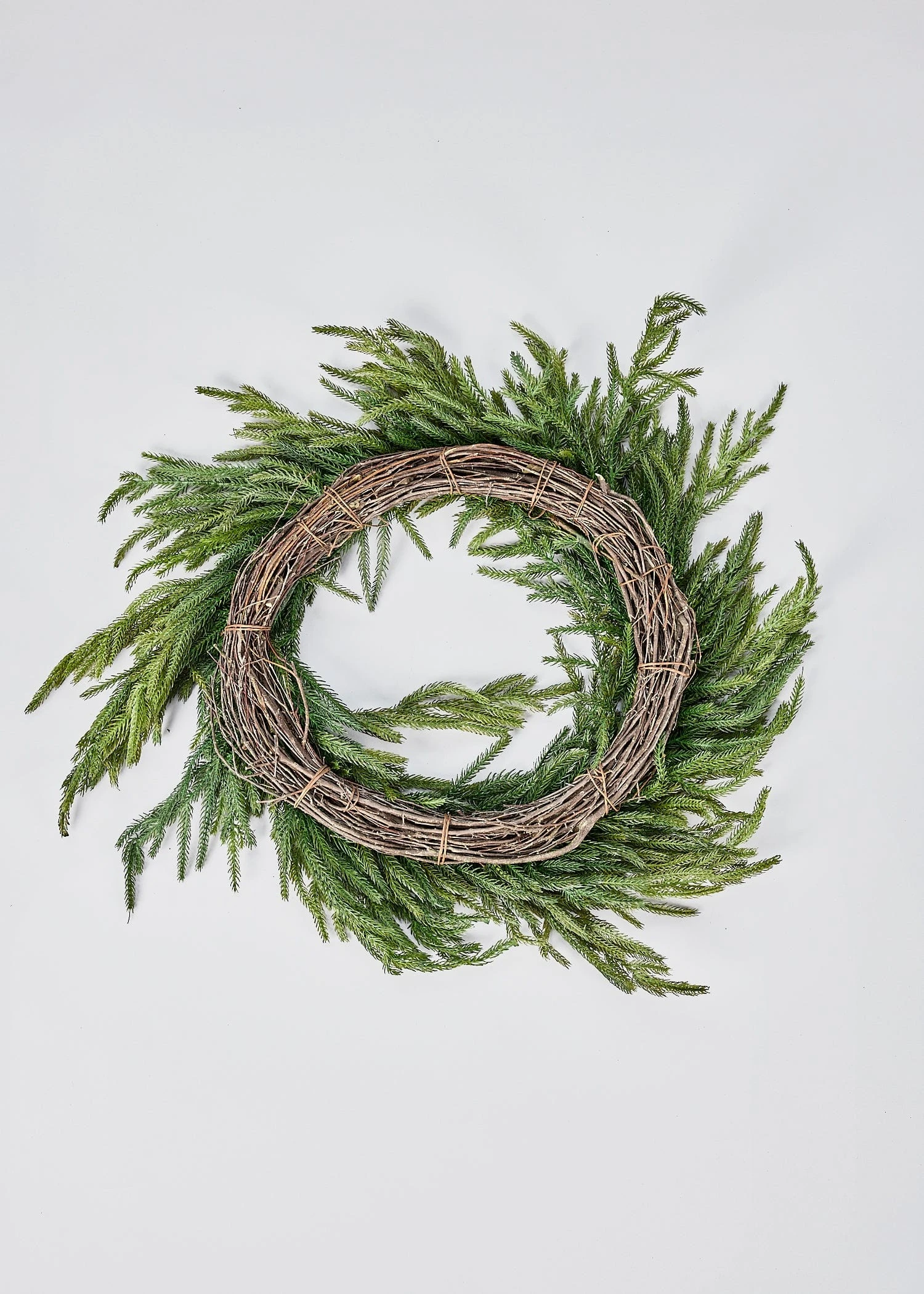 Looking for a Christmas wreath? Look no further, this natural touch artificial Norfolk pine wreath is perfect to decorate your home for the holidays! Featuring lush, lifelike greenery, it’s a great way to bring nature indoors and enjoy fresh-looking Christmas greens all winter long.