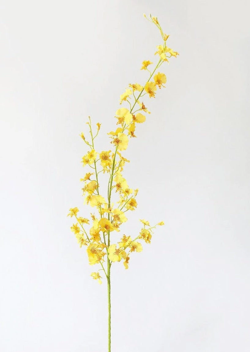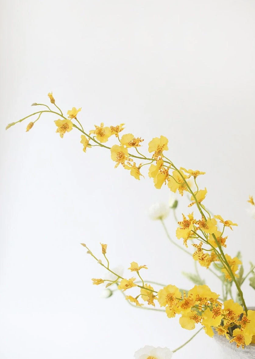 This dancing orchid spray is among the most beautiful nature-inspired faux tropical flowers. Its gorgeous yellow blooms are splashed with speckles in rust red and burnt sienna hues. Simply style the artificial orchids in a vase to create a bright and colorful arrangement that elevates your home table decor.