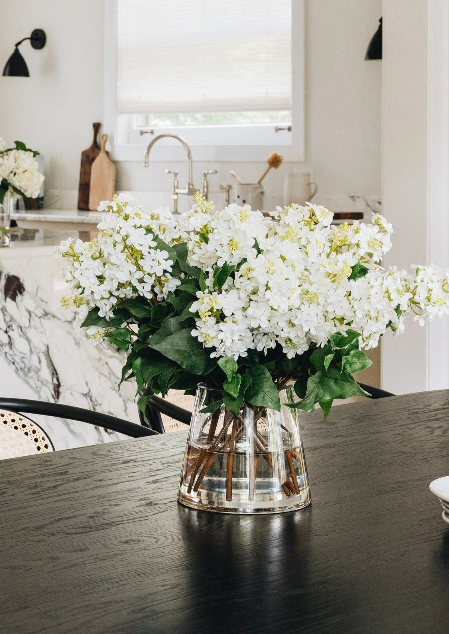 This 16″ artificial blooming spring flower arrangement of white lilacs in a clear glass vase is the perfect decor piece to bring timeless beauty to your interior space. Style this faux floral centerpiece on a table in any room, and you have an elevated design that perfectly replicates nature’s botanicals. And the best part? Premade arrangements offer luxury without effort, so you can enjoy the elegant look of fresh, forever blooms in the comfort of your home. Stems are styled in acrylic water and cannot be removed.