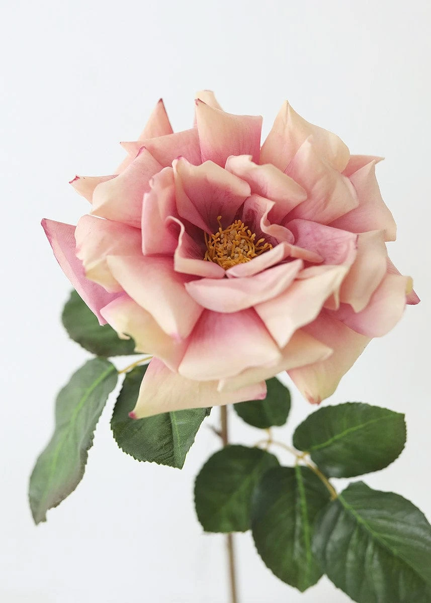 Bring elevated beauty to your artificial floral arrangements and wedding flower bouquets with nature-inspired faux botanicals. This real touch open Dutchess rose stem in dusty mauve is truly stunning.