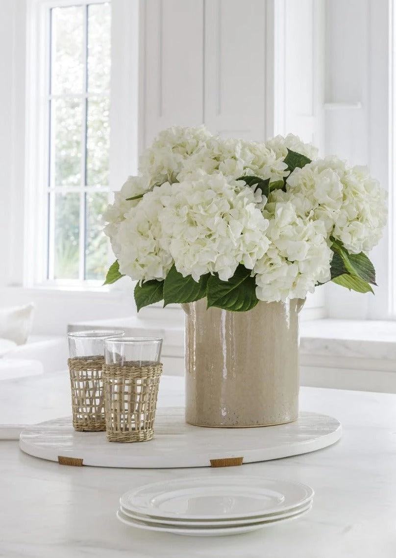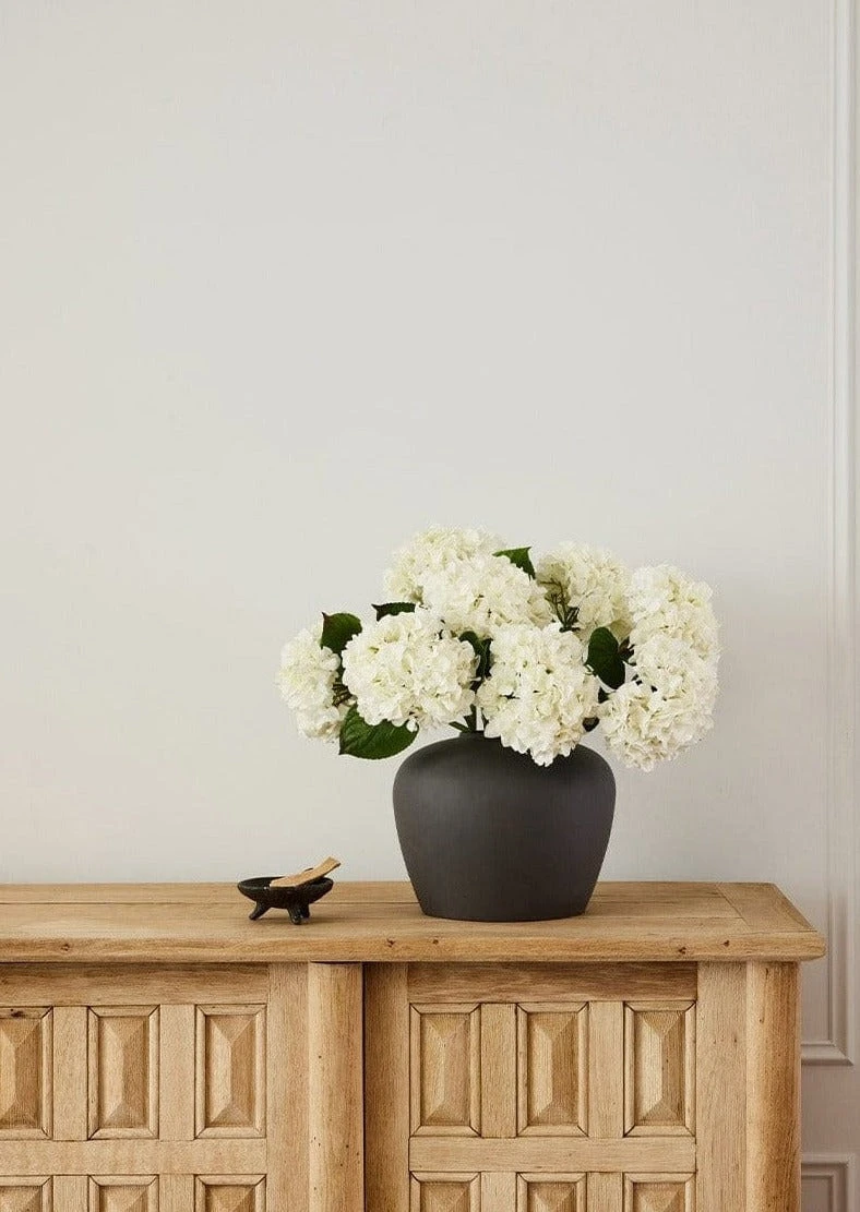 Simple but sophisticated floral styling calls for the most beautiful permanent botanicals like this talc white artificial hydrangea, great for a modern coastal palette or creating a neutral organic modern room. These real-touch flowers give any faux arrangement or bouquet an elevated feeling of a fresh-cut stem that will have lasting enjoyment.