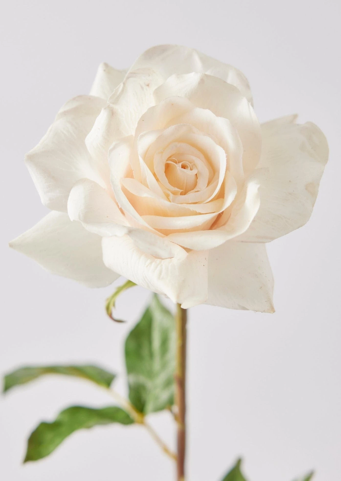 Life-like, high-quality artificial flowers are found in this classically beautiful cream blush real touch Dutchess rose. Display a few stems in your favorite table vase for an effortlessly chic yet elegant floral arrangement.