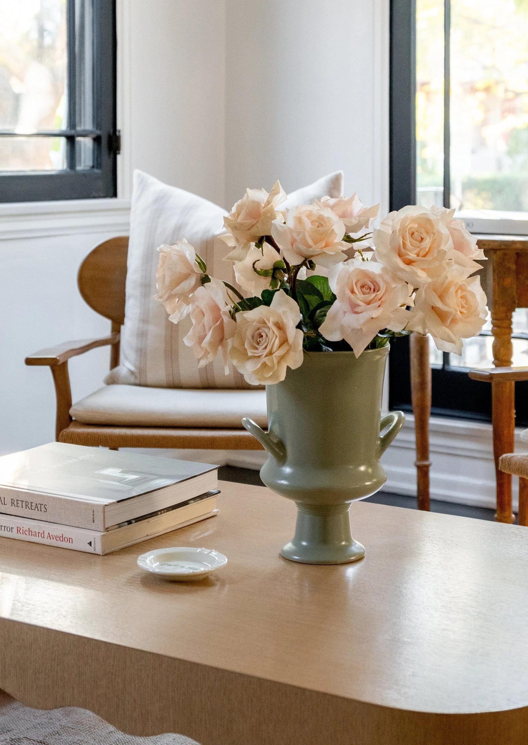 Sporting elegant design and a beautiful, neutral hue, this sage green ceramic urn vase brings a unique and elevated look to any space without overpowering your decor. Style the urn with tall branches or your favorite faux or dried flowers to create a permanent botanical arrangement that takes your interior home decorating to the next level.