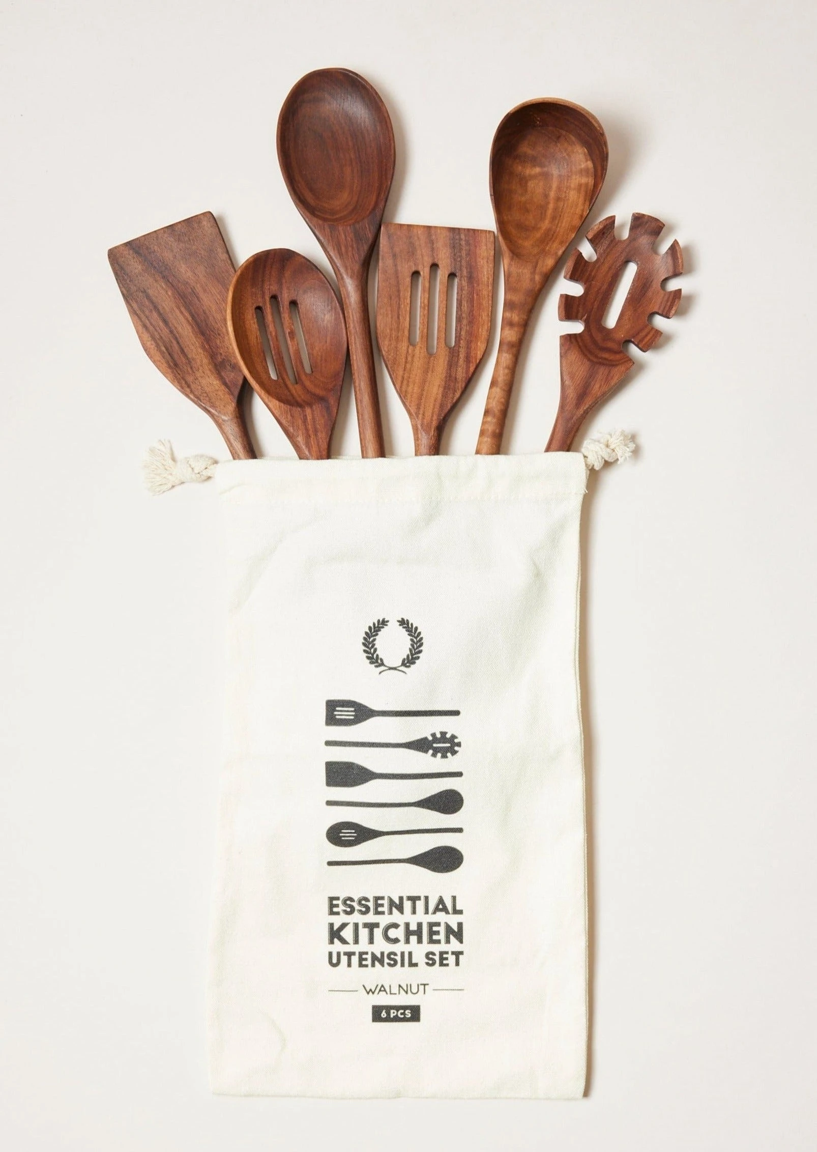 Stir, mix, and sautè in style with Farmhouse Pottery’s Essential Kitchen Utensils! Crafted from natural walnut wood, this kitchen tool set is functional yet beautiful, and each utensil is comfortable to use to make cooking a more enjoyable experience. When you are not using them, display these attractive wooden utensils in the Stoneware Laurel Crock – also from Farmhouse Pottery – to elevate the interior design in your kitchen space.